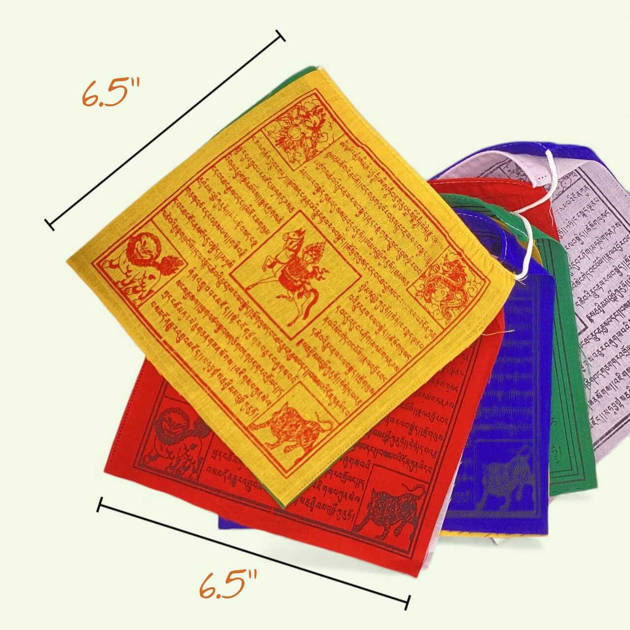 100% Cotton Windhorse Tibetan Prayer Flags 6.5X6.5 inches